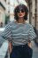 French Terry Streifen - altweiß/moosgrün